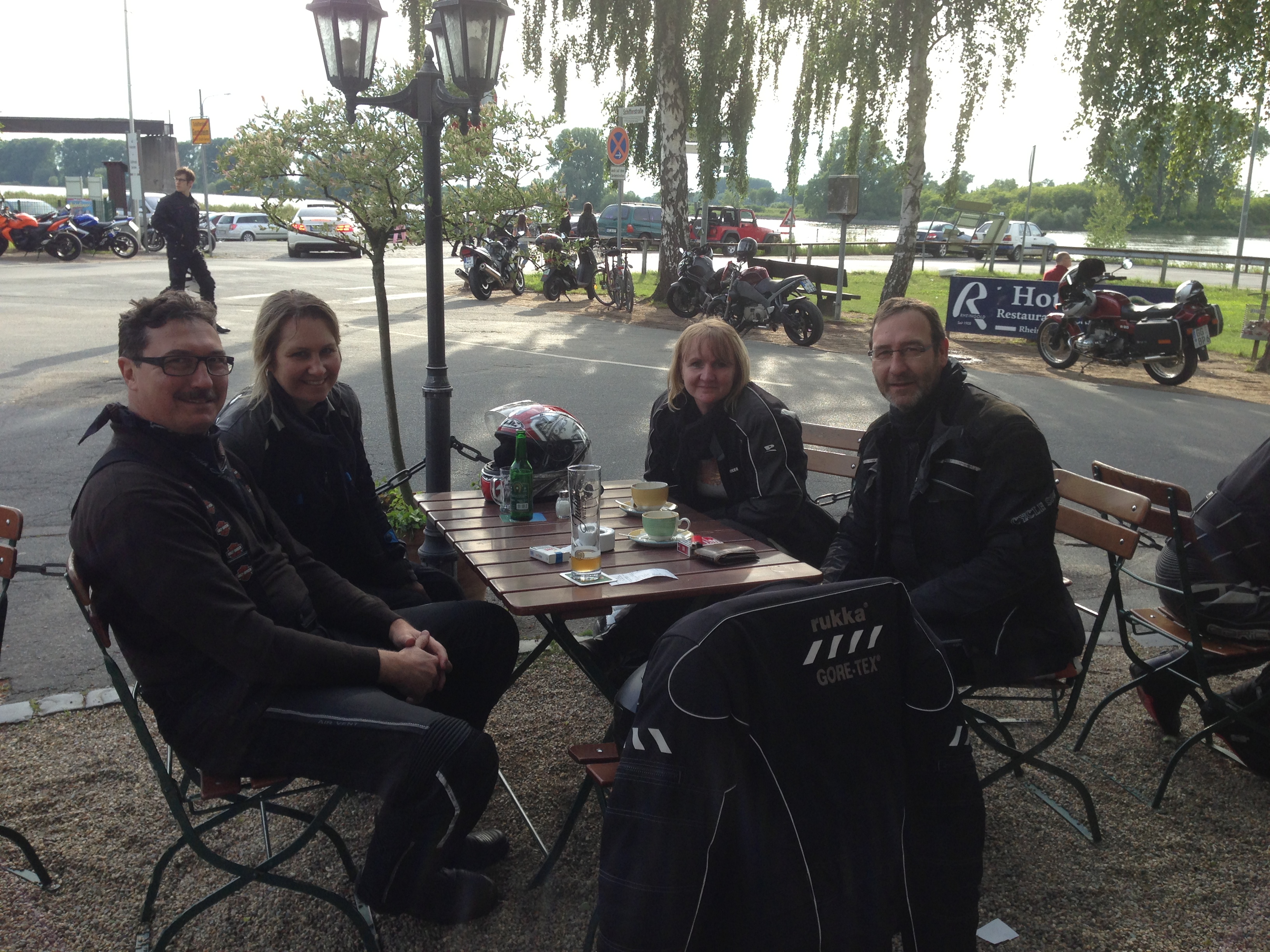 Dann ging es den Rhein immer am Wasser entlang, an der Lorely vorbei bis nach Rüdesheim. Hier ging es nur noch im Schritttempo weiter und der Ort war von Harley Fans und Touristen so überfüllt, sodass wir uns entschlossen unseren Tourabschluss in Heimatnähe durchzuführen. Über Eltville, Wiesbaden und das hessische Ried gelangten wir nach Gernsheim an das Fährufer, ein bekannter Treffpunkt für Biker und Ausflügler.