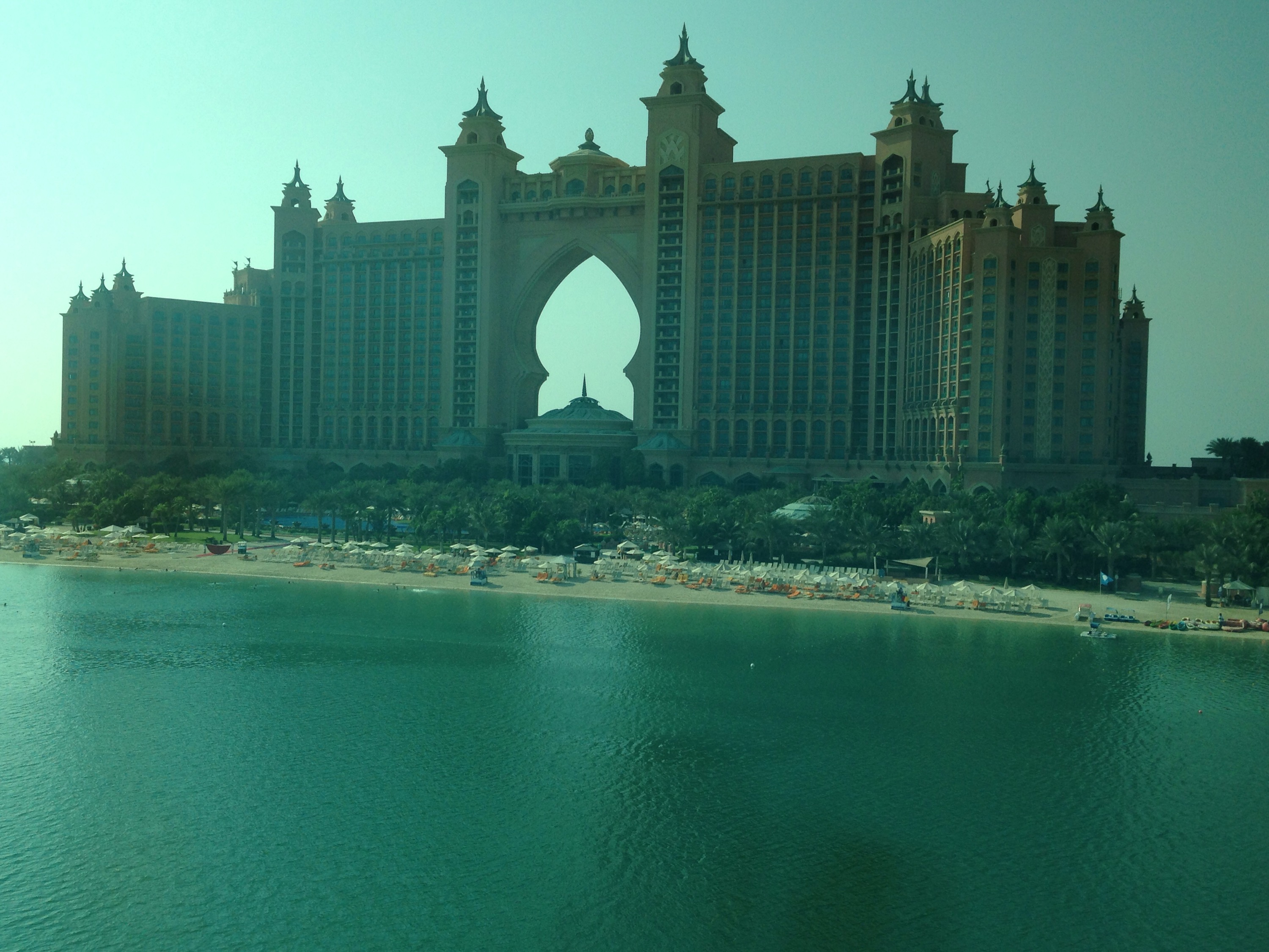 Nach einem längeren Fußmarsch erreichten wir die Monorail, die direkt auf die Palme und zum Hotel Atlantis fährt. Das Hotel bietet einen schönen Fotohintergrund, ist aber ansonsten den Hotelgästen vorbehalten. Alle Sonderleistungen wie das Delphinarium oder das Aquarium läßt sich das Hotel teuer bezahlen. Wir empfanden das nur als Touristenfalle und machten uns mit der Monorail wieder auf dem Rückweg. Die Monorail bietet einen schönen Bick auf den Burj al Arab und gibt einen guten Einblick auf die Anlage der künstlich aufgeschütteten Palminsel.