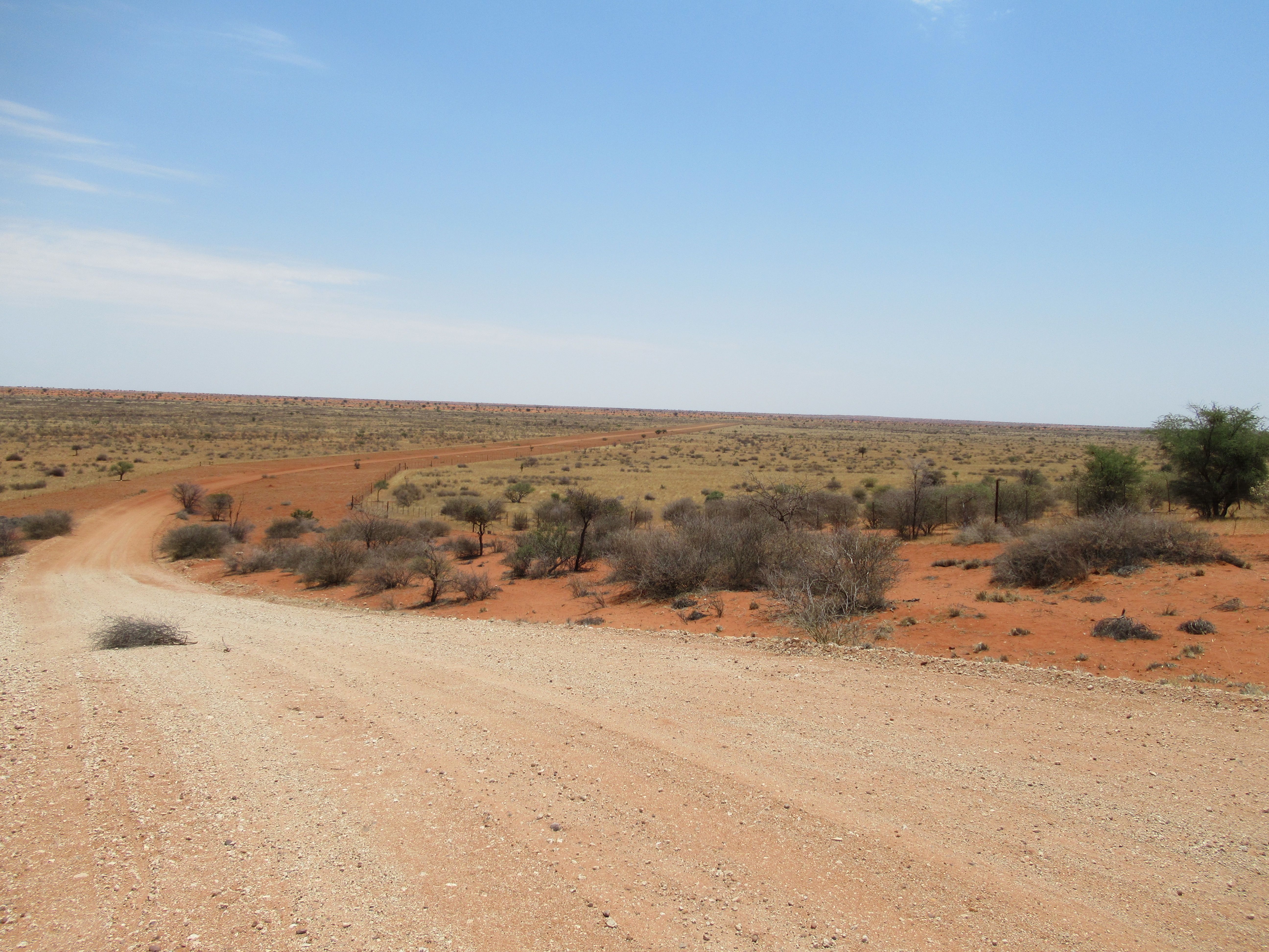 Der Linksverkehr stellte keinerlei Problem dar. Wir bekamen teilweise stundenlang kein Fahrzeug zu Gesicht. Gewöhnungsbedürftig war allerdings, sich genauso lange von den Querrillen durchschütteln zu lassen und je nach Sanddichte auf dem Belag schwimmend oder rutschend mit 60 bis 80 km/h unterwegs zu sein. Schneller zu fahren ist nicht ratsam, was die Statistik der tödlichen Unfälle sich überschätzender Fahrer in Namibia belegt. Warum auch? Wir haben alle Zeit der Welt und wollen schliesslich von der Landschaft etwas sehen. Zudem ist es einfacher den Antilopen, Warzenschweinen oder Ziegen auszuweichen, die immer wieder unvorhersehbar die Straße queren. Neu für uns war auch das dauernde Öffnen und Schliessen von Gattern, durch die die einzelnen Farmen Ihren Tierbestand auseinanderhalten. Zudem steigt man nicht nur in die Hitze von gut 40 Grad, sondern auch mitten in der Wildnis aus. Das ungute Gefühl hierbei legt sich aber rasch, Gefahr droht eigentlich nur in den Tierreservaten, dort ist allerdings jegliches Aussteigen streng untersagt.