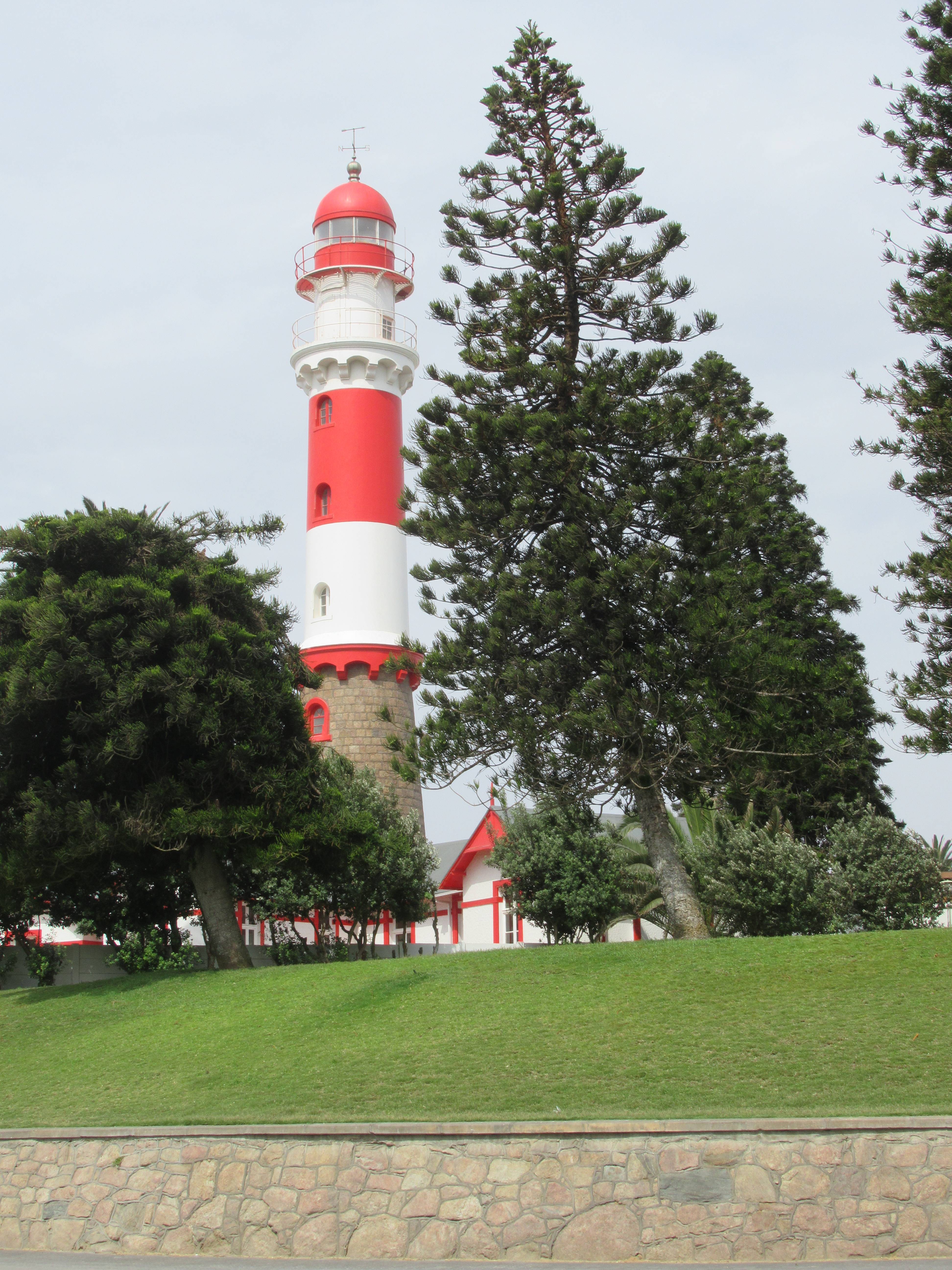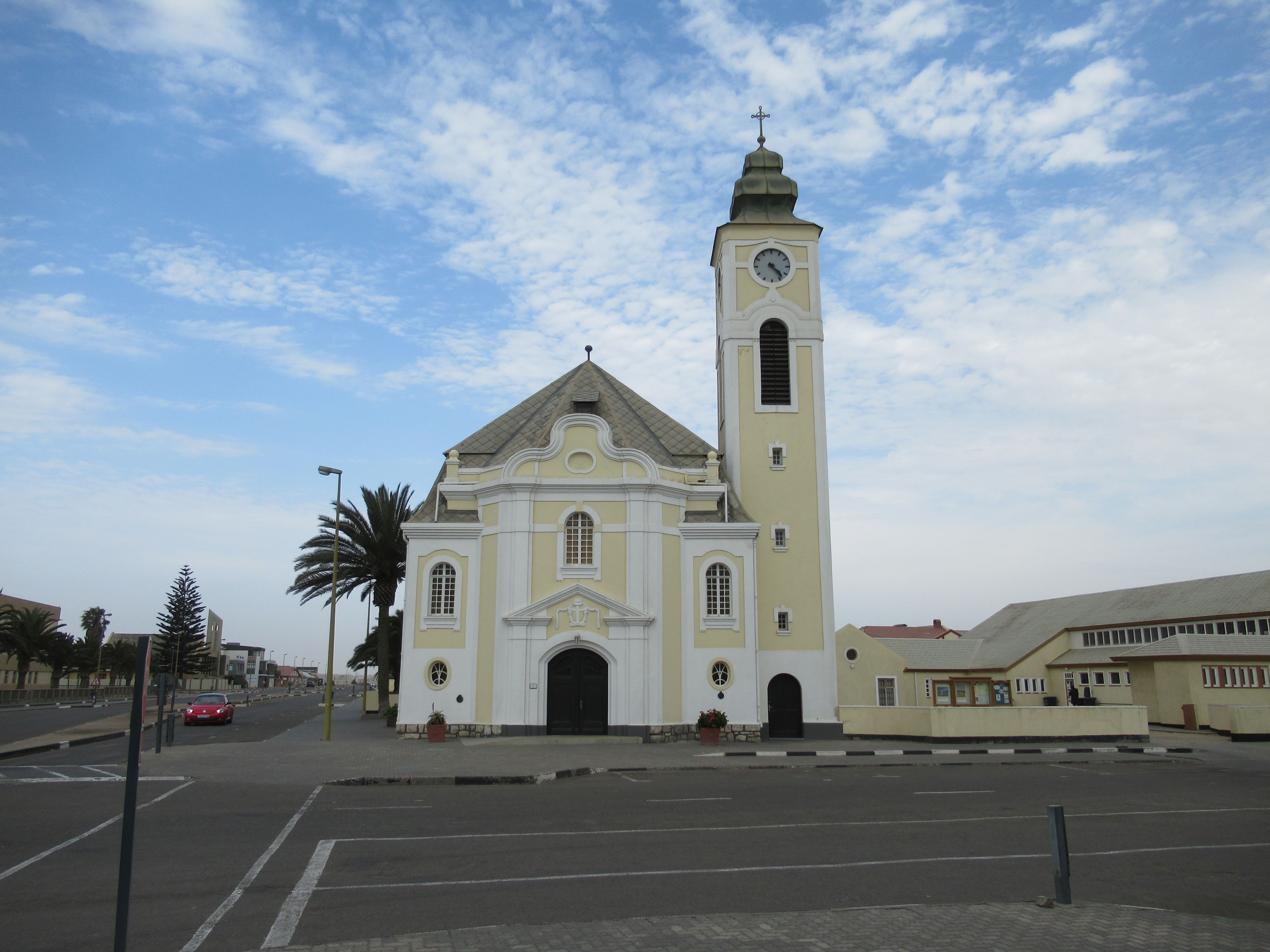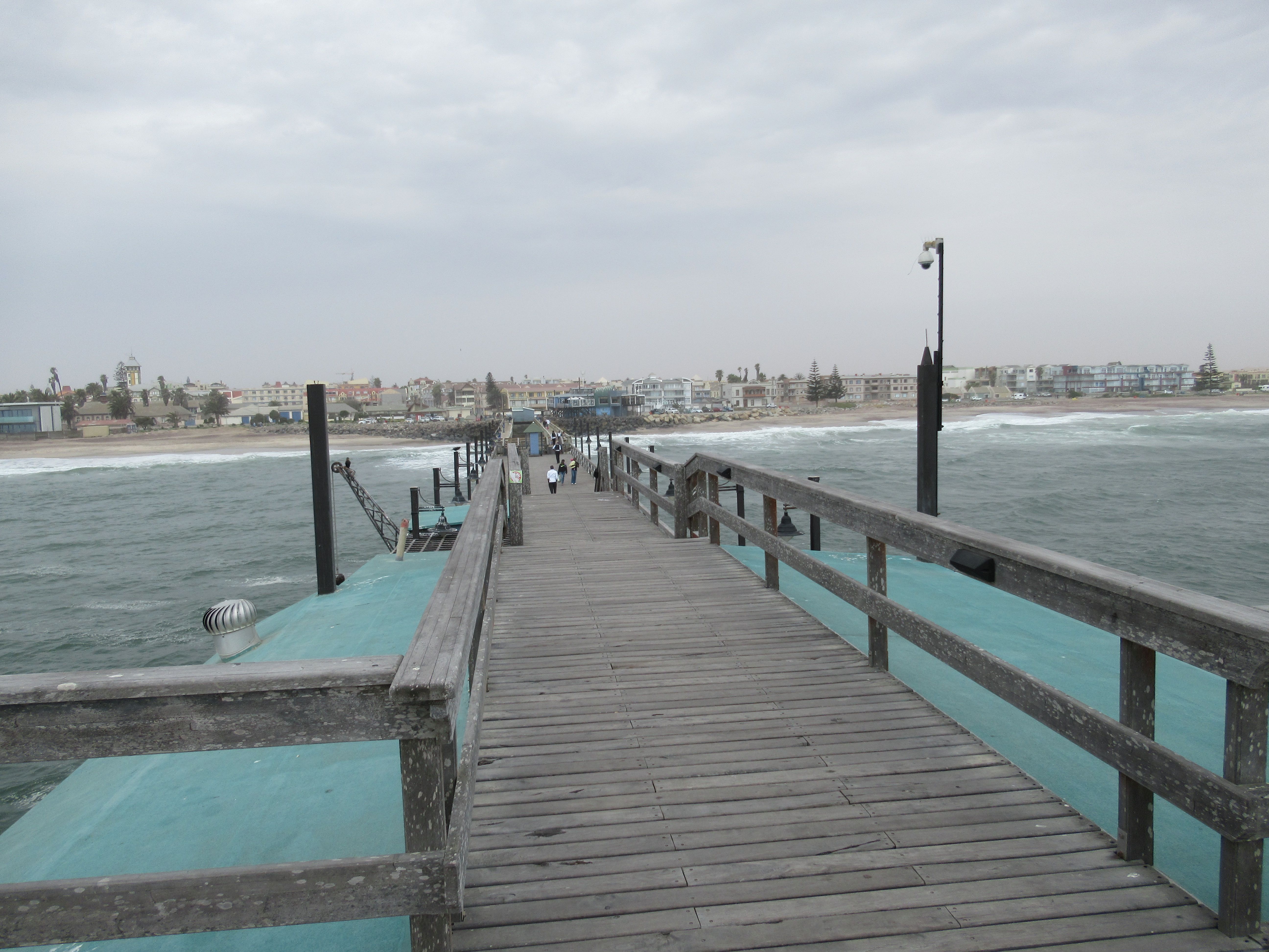 Unseren Stadtrundgang starteten wir am späten Nachmittag. Die Sehenswürdigkeiten sind übersichtlich und in jedem Reiseführer ausführlich beschrieben. Wir konzentrierten uns auf die Uferpromenade und den Pier. Folgt man dem Strand erreicht man einen kleinen Markt mit einheimischen Produkten wie Körbe und Stoffe und Schnitzereien. Gleich gegenüber kann der weithin sichtbare Leuchtturm und beliebtes Fotomotiv besichtigt werden. Das Museum ließen wir aus, soll aber durchaus interessante Exponate beherbergen. Einen Besuch wert ist auch das Café Anton mit seiner berühmten original Schwarzwälder Kirschtorte. Bleibt noch die Kirche und der alte Bahnhof, der heute ein sehr gutes Hotel beherbergt und die Sehenswürdigkeiten sind weitestgehend besichtigt. Wer Swakopmund besucht kommt wohl auch nicht um einen Abstecher zum Sakopmund Brauhaus herum. Neben typischen bayrischen Gerichten findet der hungrige Besucher dort allerdings auch die einheimische Küche auf der Speisekarte. Wie überall gilt auch hier: vorher reservieren.