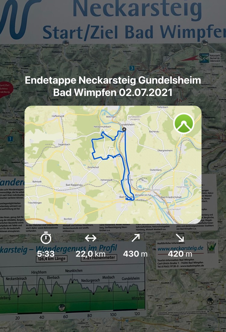 Wanderung finale Etappe auf dem Neckarsteig von Gundelsheim nach Bad Wimpfen Juli 2021