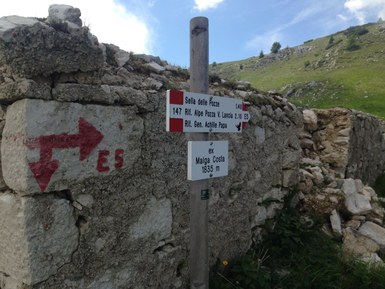 Es wird ein langer Wandertag, der Wanderführer empfiehlt entsprechend Wasservorräte und Proviant mitzunehmen. Wir füllen die Wasserschläuche und die Reserveflasche komplett auf, ebenso belegte Brötchen, was das Frühstück eben so hergibt. Es war bereits warm am Morgen als wir durch Giazza liefen und ein malerisches Örtchen vorfanden, das sich durch enge Gassen und Treppen windet. Hätten wir am Vorabend noch erkunden sollen, aber da wollten die Füße nicht mehr.