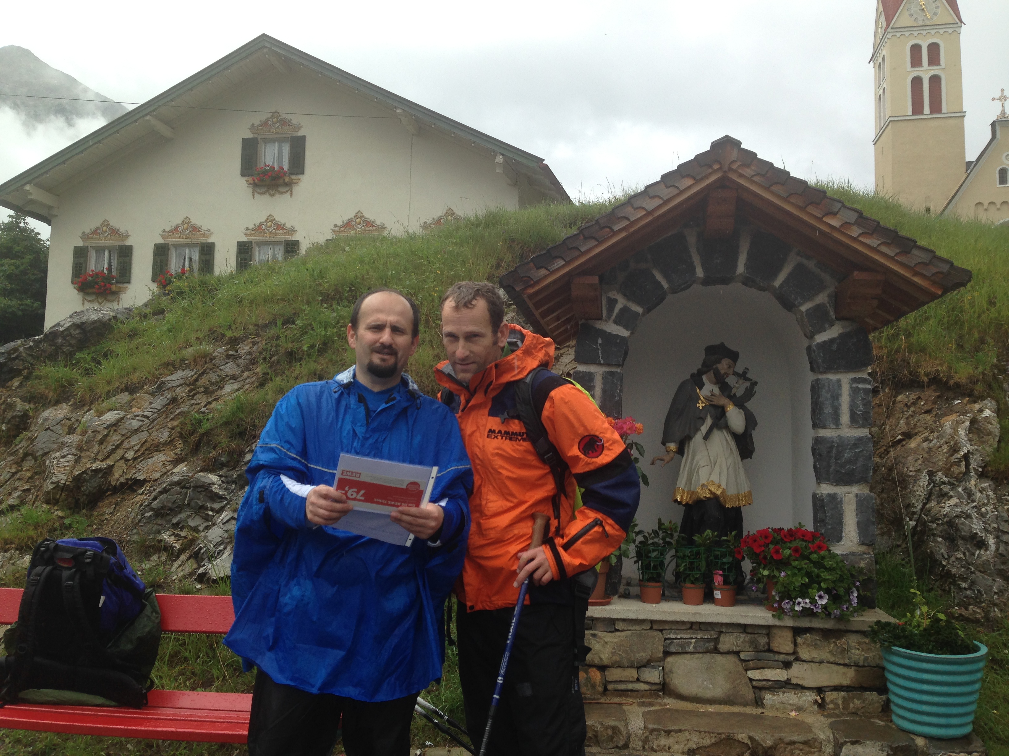An der Materialseilbahn angekommen starten wir den Aufstieg, der im Normalfall 2 Stunden dauern soll. Wir hatten allerdings erschwerte Bedingungen an diesem Tag und benötigten beinahe 3,5 Stunden für den Aufstieg. Der Weg war entweder ein halber Fluss, indem uns die Wassermassen entgegenkamen oder er verwandelte sich in eine Schlammlandschaft in der die Wanderstöcke sich festsaugten. Das ganze wurde auf die Dauer kräftezehrend und wir waren letztendlich froh gegen 17 Uhr die Hütte erreicht zu haben. Bernd folgte mit dem zusätzlichen Marsch in den Beinen um 19 Uhr nach.
