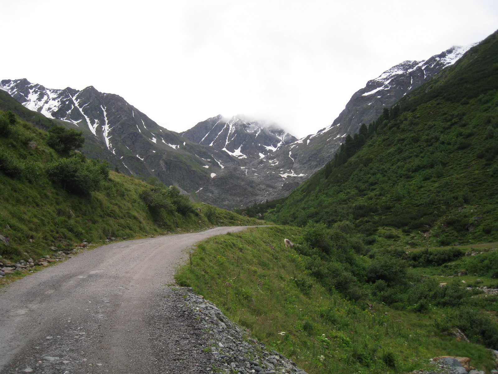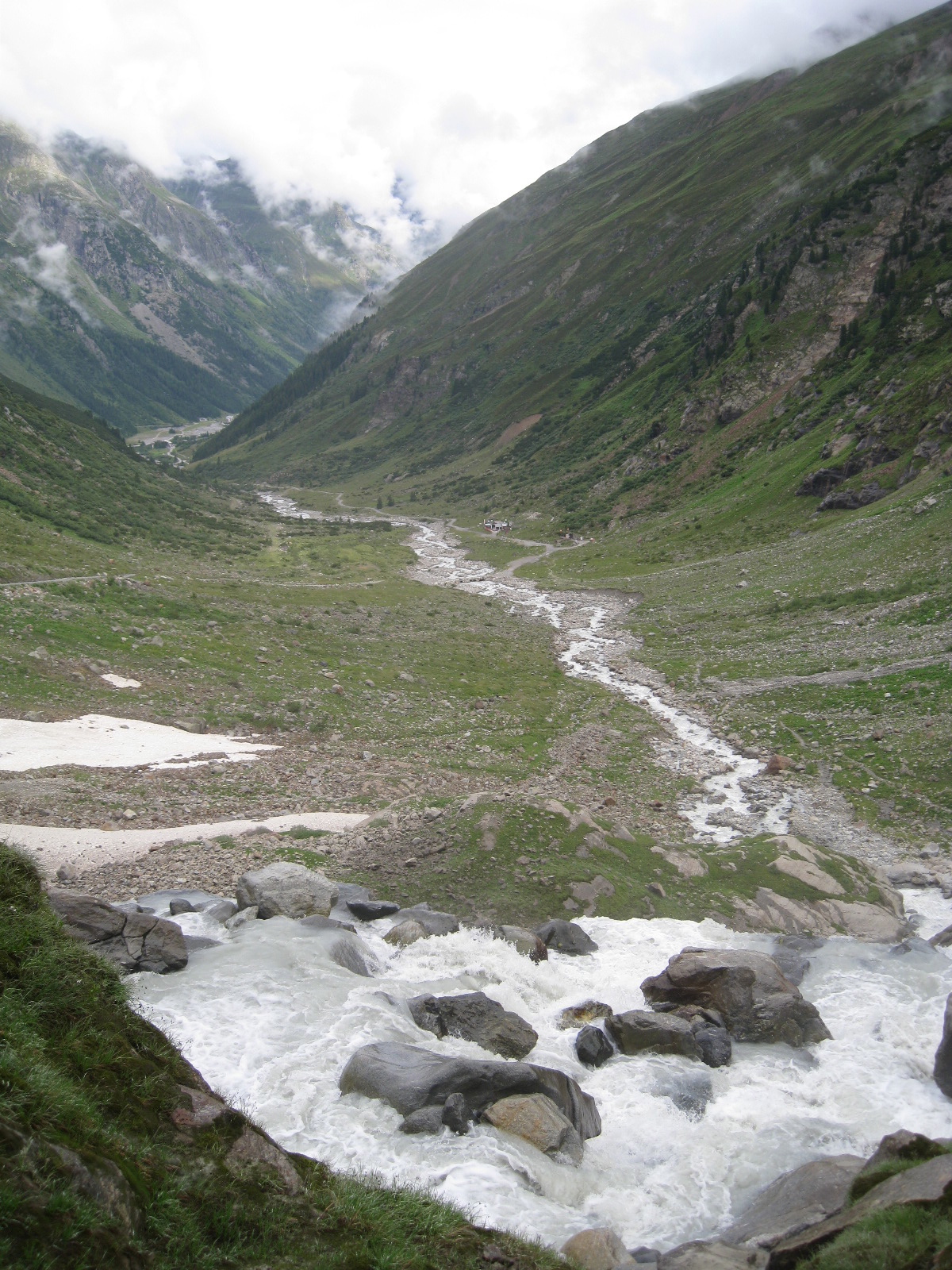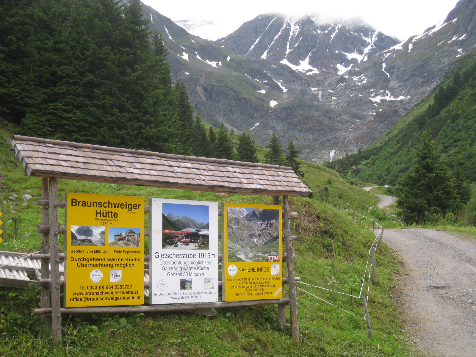 Zum Beginn geht es gemütlich einen Fahrweg entlang, der sich an einem Bach entlang schlängelt und an der Gletscherstube (letzte Übernachtungsmöglichkeit vor dem Gletscher) vorbeiführt.