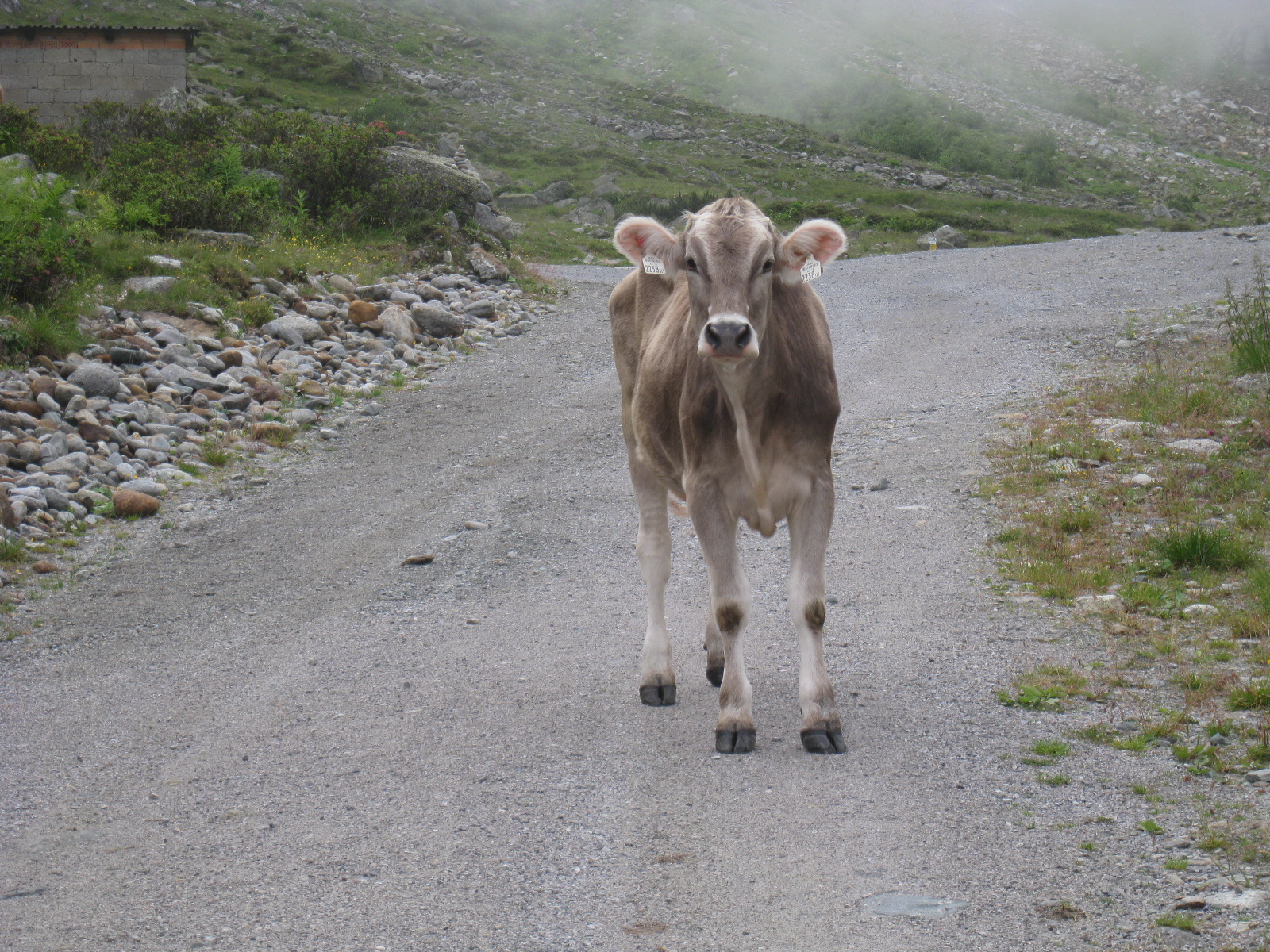 kreuzt bei leichtem Auf und Ab immer mal wieder Seilbahnen und gibt den Weg auf die durch Pisten und Schneisen verschandelte Bergwelt frei. Am Alpengasthof Sonneck angekommen fängt es wieder an zu schütten und die Lust am Laufen nimmt minütlich ab. Füße, Beine, Knie und Muskeln wollen auch nicht mehr, aber es steht noch eine knappe Stunde steilen Abstieg durch dichten Wald nach Zwieselstein bevor. Ist auch dieses Stück geschafft, darf man einen Kilometer auf einer Bundesstrasse wandern und erreicht über einen Feldweg und weiteren 2 Kilometern dann Zwieselstein. Endlich.