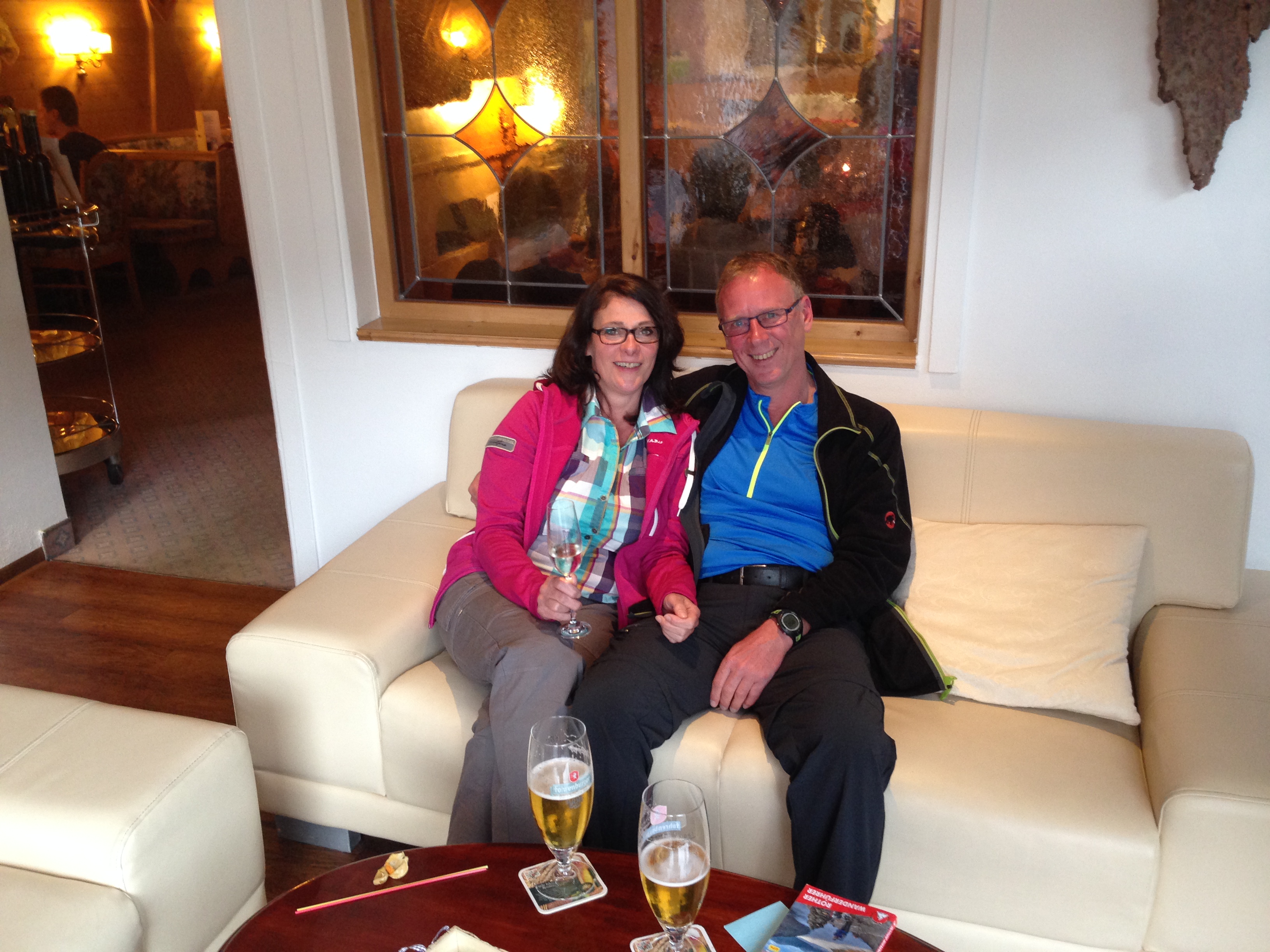 Mit Klaus und Hans bin ich verabredet und wir laufen die Tour heute zusammen. Meine Unterkunft habe ich bereits im Hotel Alpina unter booking.com gebucht, denn heute habe ich Lust auf Entspannung, Sauna, gutes Abendessen und ein spannendes Endspiel. Bernd hat die Adresse und will vorbeikommen, Klaus und Hans haben schon woanders gebucht und dort war kein Zimmer mehr frei. So organisiert sich alles beim E5 irgendwie und findet sich am Schluss zusammen.