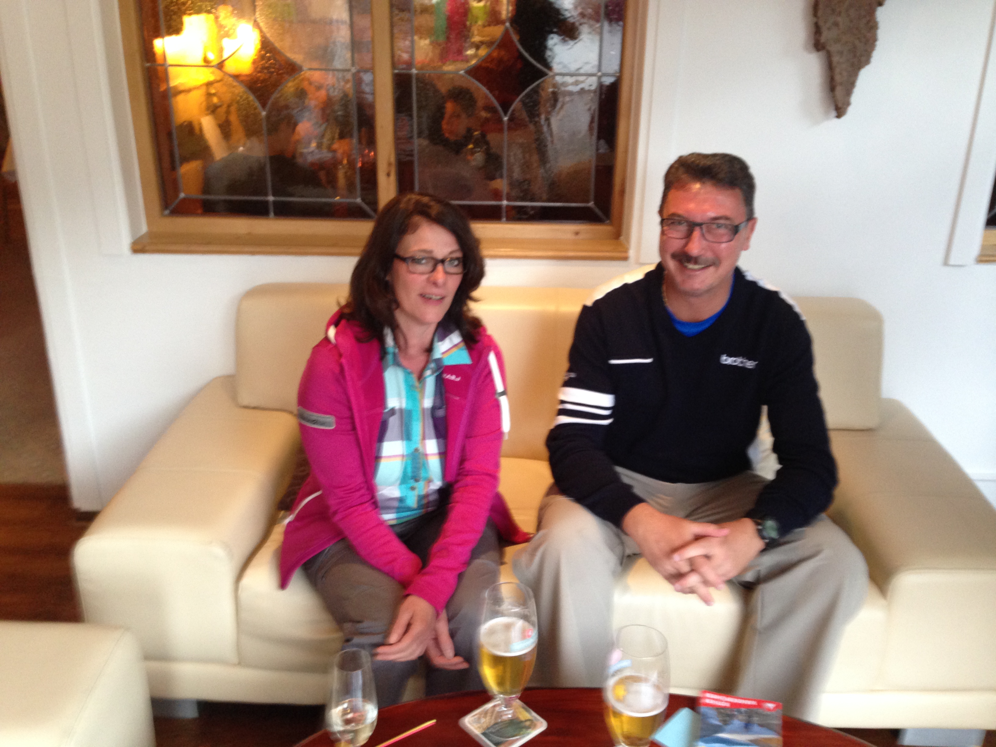 Um 9 Uhr machen wir uns auf zur Seilbahn und fahren mit der ersten Tour nach oben. Mit in der Bahn sind Rainer und Ute, die ich schon auf den Hütten zuvor gesehen habe. Beide fragen nach einer Unterkunft in Wenns und wollen auch das Endspiel sehen. Ich schildere meine Buchung und Rainer als Technikfreak bekannt, bucht für sich und Ute ebenfalls ein Zimmer im Alpina noch vor Ankunft auf dem Krehberg. Wir werden uns am Abend dort treffen.