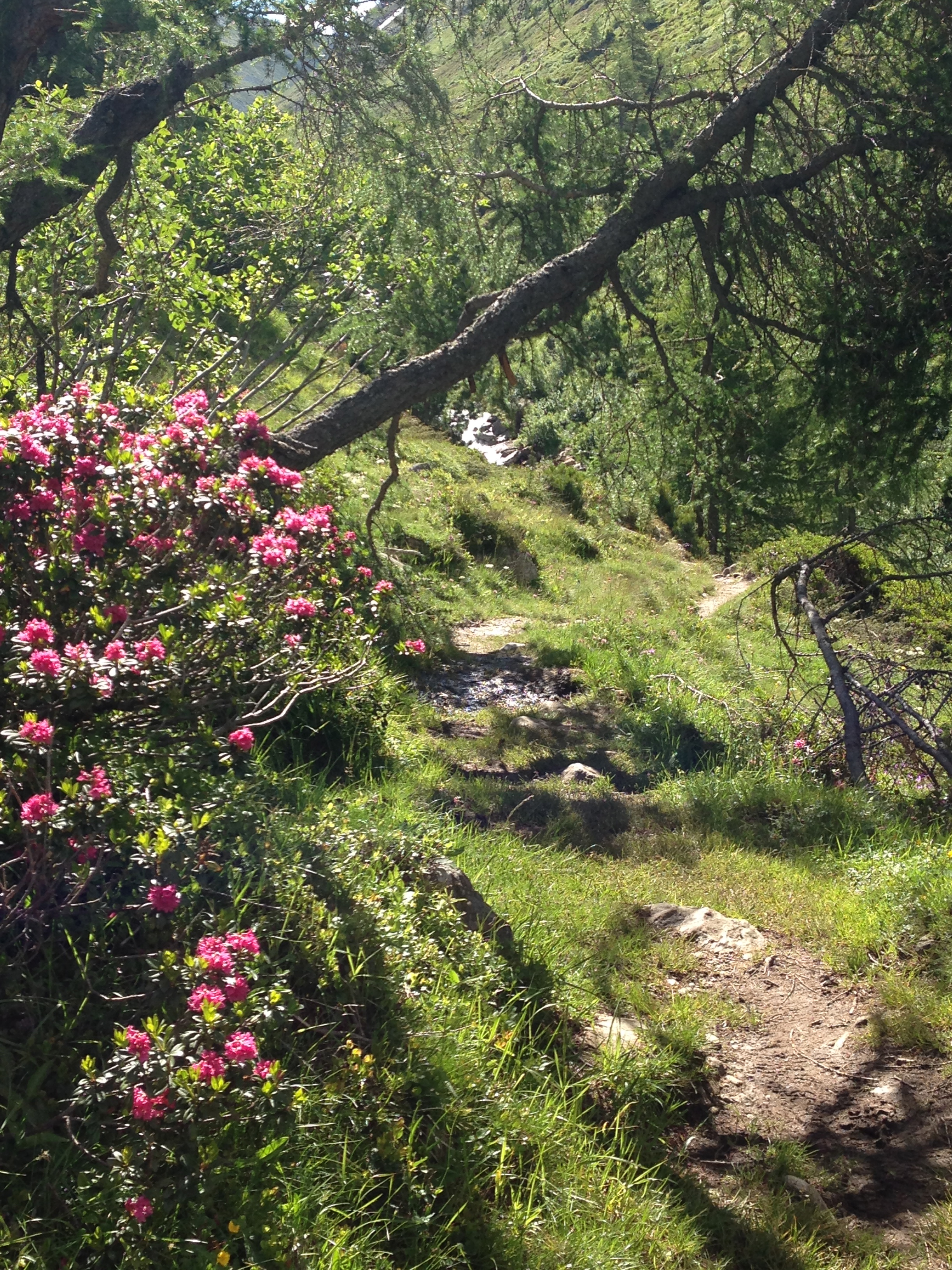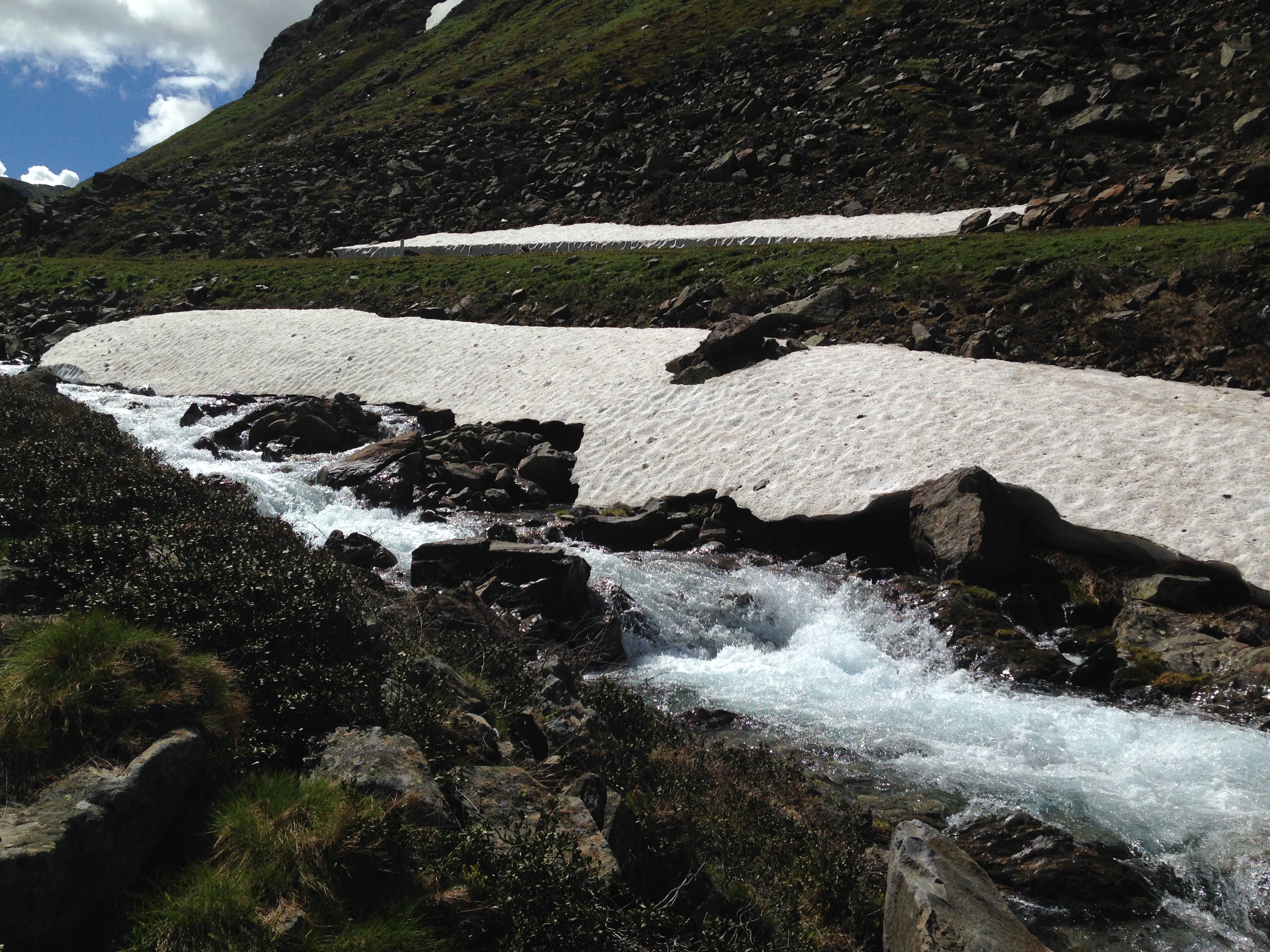 Um 8.00 Uhr mache ich mich auf den Weg und schon nach 10 Minuten kommt mir Anke und Harald entgegen. Ankes Knie macht nicht mit und beide fahren mit dem Bus aufs Timmelsjoch und wollen es von oben nochmals probieren. Karl-Friedrich ist bereits unterwegs und wir treffen uns 1 Stunde später auf einer Lichtung um Sonnencreme aufzutragen. Der Tag bleibt sonnig und warm und selbst auf dem Timmelsjoch auf 2.509m ist ein T-Shirt ausreichend. Und das kommt dort oben selten vor.