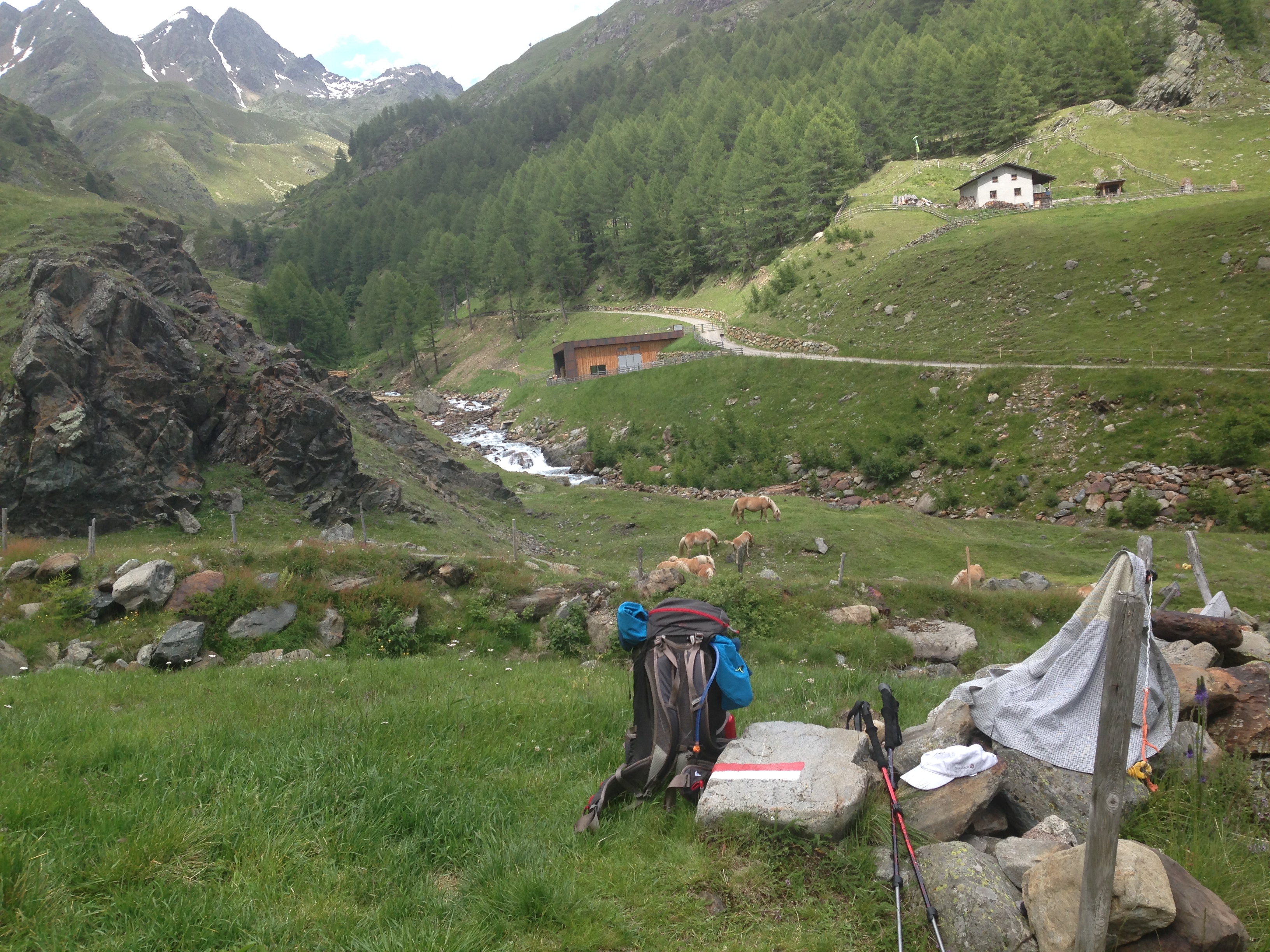 Der E5 verläuft heute teilweise an der Timmelsjoch Passstrasse entlang, die Gesamtetappe ist aber trotzdem landschaftlich reizvoll und abwechslungsreich.