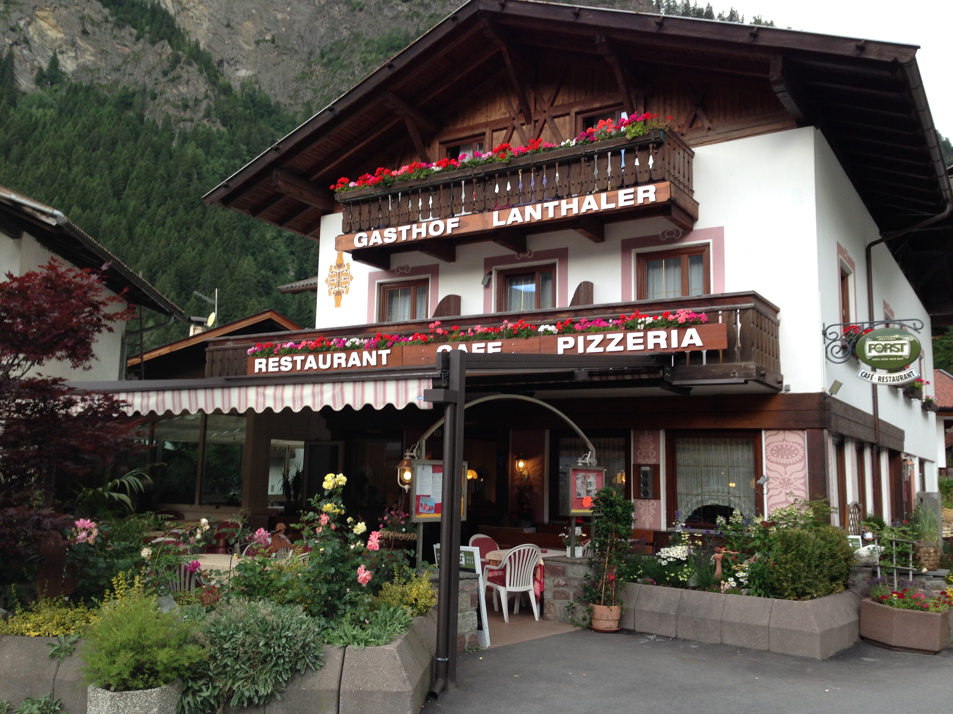 Um 19 Uhr komme ich in Moos an und finde sofort ein Zimmer im gemütlichen Gasthof Lahntaler. Nach einer erfrischenden Dusche genieße ich auf der Terrasse ein hervorragendes Südtiroler Tris. Das deftige Südtiroler Essen besteht aus 3 Sorten Knödel oder Knödel und Nocken, abgeschmälzt mit brauner Butter und mit Parmesankäse bestreut. Einfach nur gut und die perfekte Vorbereitung für den morgigen Tag. Ich fühle mich heute irgendwie „angekommen“ auf meiner Tour.