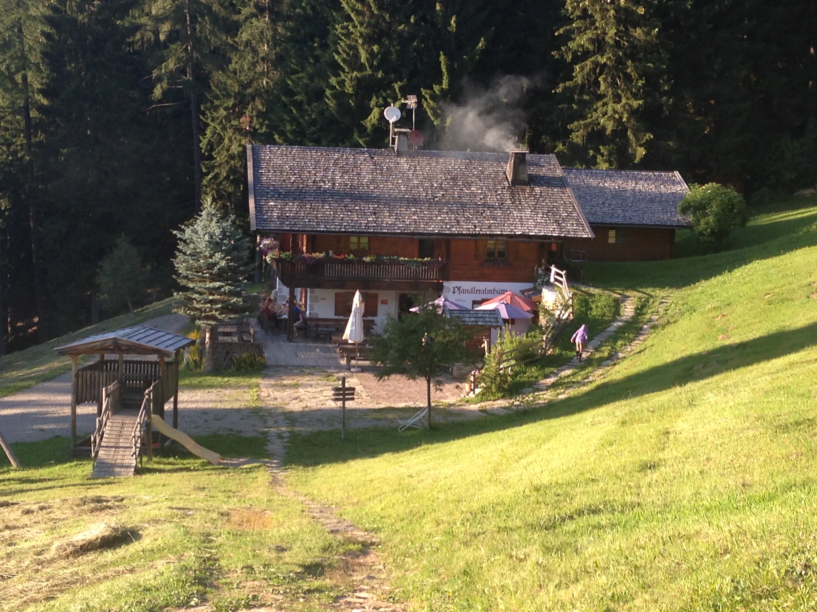 Für die letzten 300 Höhenmeter hinauf zur Pfandleralm benötige nochmals 2 Stunden. Zum einen sind die Temperaturen immer noch hoch und der Weg führt in direkter Richtung steil hinauf und quert mehrfach den Fahrweg zur Alm.