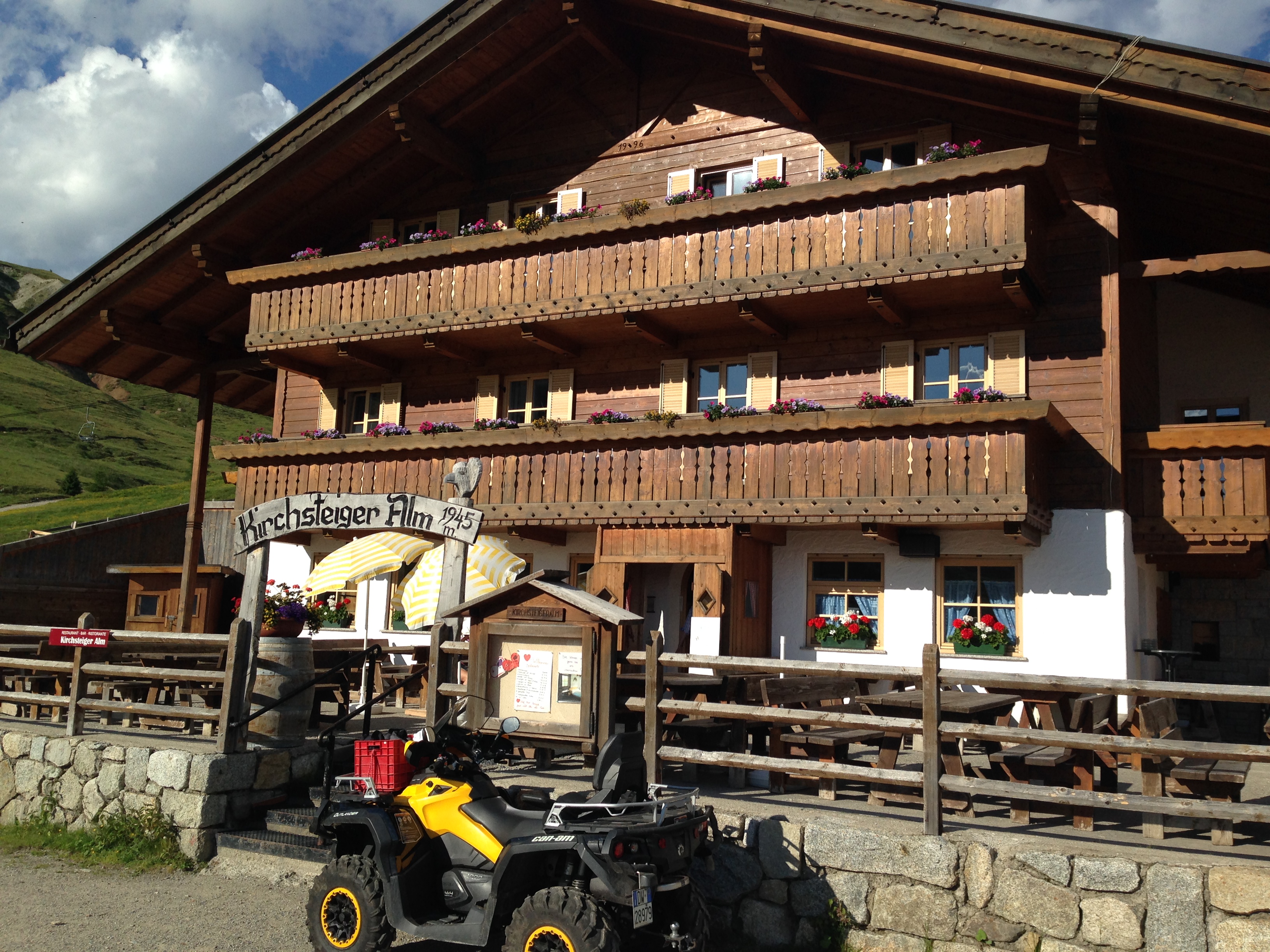 Vor der Meraner Hütte liegt die Kirchsteiger Alm, die ich als Quartier der Meraner Hütte mit dem obligatorischen Betten- oder Matrazenlager vorziehe. Ich bin der einzige Gast an diesem Abend und erhalte noch ein Wiener Schnitzel zusammen mit den Kindern der Pächterin. Die meisten E5 Wanderer übernachten auf der Meraner Hütte und ich verabschiede mich dort noch von Anke, Harald und Karl-Friedrich, da der morgige Wandertag mein letzter auf dieser Reise sein soll.