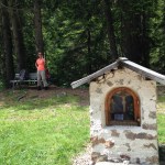 Unser erstes Ziel war die Kohlerer Bergbahn die zugleich die älteste Personenseilbahn der Welt ist. Die Fahrgäste erreichen das 860 Höhenmeter über Bozen gelegene Kohlern in lediglich 7 Minuten – wenn Sie denn fährt. In unserem Fall fragten wir zum Glück den ersten Taxifahrer am Bahnhof nach dem Weg und dieser informierte uns, das die Bahn aufgrund von Instandsetzungsarbeiten seit dem Vortag für einen Monat außer Betrieb ist. Also direkt ins Taxi gesetzt und 30 Minuten in Serpentinen zur Bergstation nach Bauernkohlern gefahren. Um 14 Uhr ging es dann mit unserer Tour bei herrlichem Wetter mit fast 30 Grad und Sonnenschein. Die Wegstrecke nach Deutschnofen verläuft recht unspektakulär, meist durch schattigen Fichtenwald, gibt aber immer wieder den Blick auf die umliegende Bergwelt frei. Ideal zum einlaufen und eingewöhnen an die Rucksäcke. Diese wogen im Schnitt 8,5 kg. Befühlt über das Trinksystem (2 Liter) und der separaten Wasserflasche (3/4 Liter) sind wir mit rund 11 kg Gesamtgewicht die Tour gelaufen. Eine Packliste haben wir visuell der Bildergalerie hinzugefügt.
